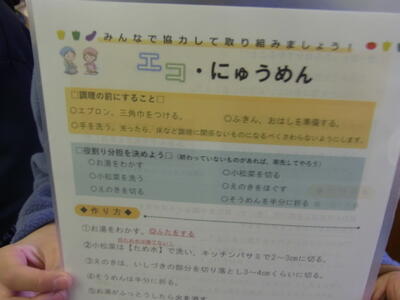 「エコクッキング」を体験では「にゅう麺」を作りました。