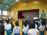 音楽朝会と体育朝会です。朝から大きな声を出して歌ったり、体を思いっきり動かしたりすると、1日のスタートを心も体も爽やかに始めることができます。