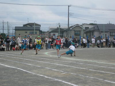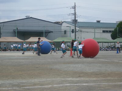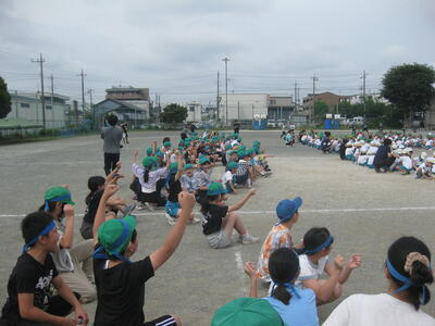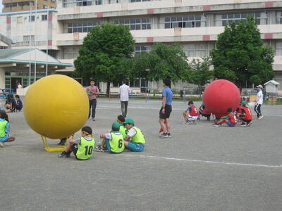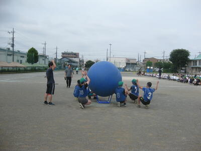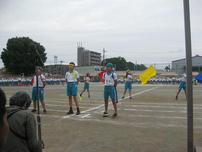 全校競技「大玉おくり」の練習と今日は「代表リレー」の練習を全校の前で行いました。