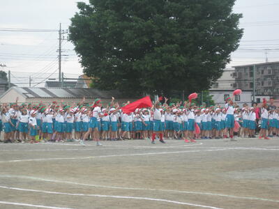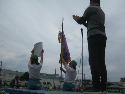 令和7年度 第31回 運動会を盛り上げてくれた「応援団員」と全力の限りバトンをつないだ「代表リレー選手団」が集まり、解散式を行いました。