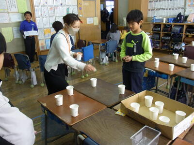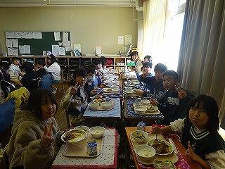 その日の給食もたてわり班で仲良くおいしくいただきました。