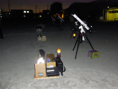 地元のビクセンさんのご協力で4台の望遠鏡による観察とデジタル画像によるきれいな「月」と「土星」を観ることができました。