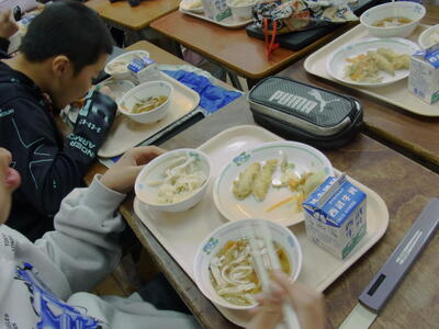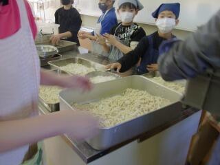5年うどん打ち体験 投稿: 和田小承認者 (18:06) 5年生が所沢市の保健給食課の方々をゲストティーチャーにお迎えして うどん打ち体験をしました。腰のある美味しいが完成しました。 今日の給食はうどんでしたが、5年生は自分たちが打ったうどんをいただきました。 腰のあるうどんにみんな感激していました。 -