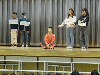 代表委員の発表 投稿: 和田小承認者 (17:10) 代表委員の発表がありました。 劇で1年間の活動についてわかりやすく伝えてくれました。 1年間様々な活動をしてくました。ありがとうございました。 来年度も様々な活動をして、和田小学校の伝統を継承していきましょう。 -